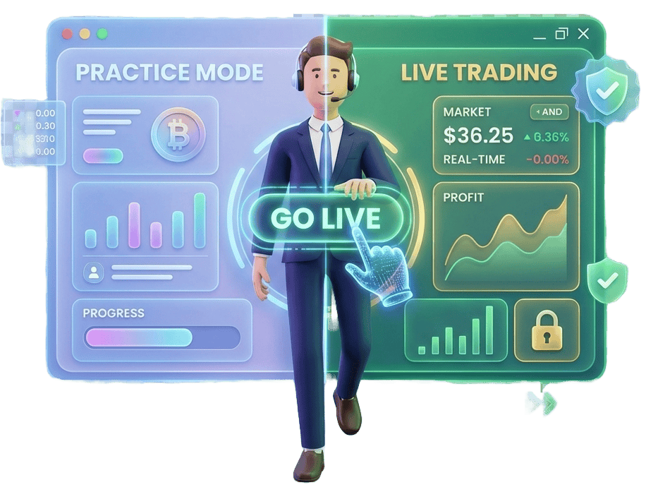 Switch to a live account with just a $10 minimum deposit. The platform is identical same interface, same tools, same assets. Your skills transfer instantly with zero learning curve.